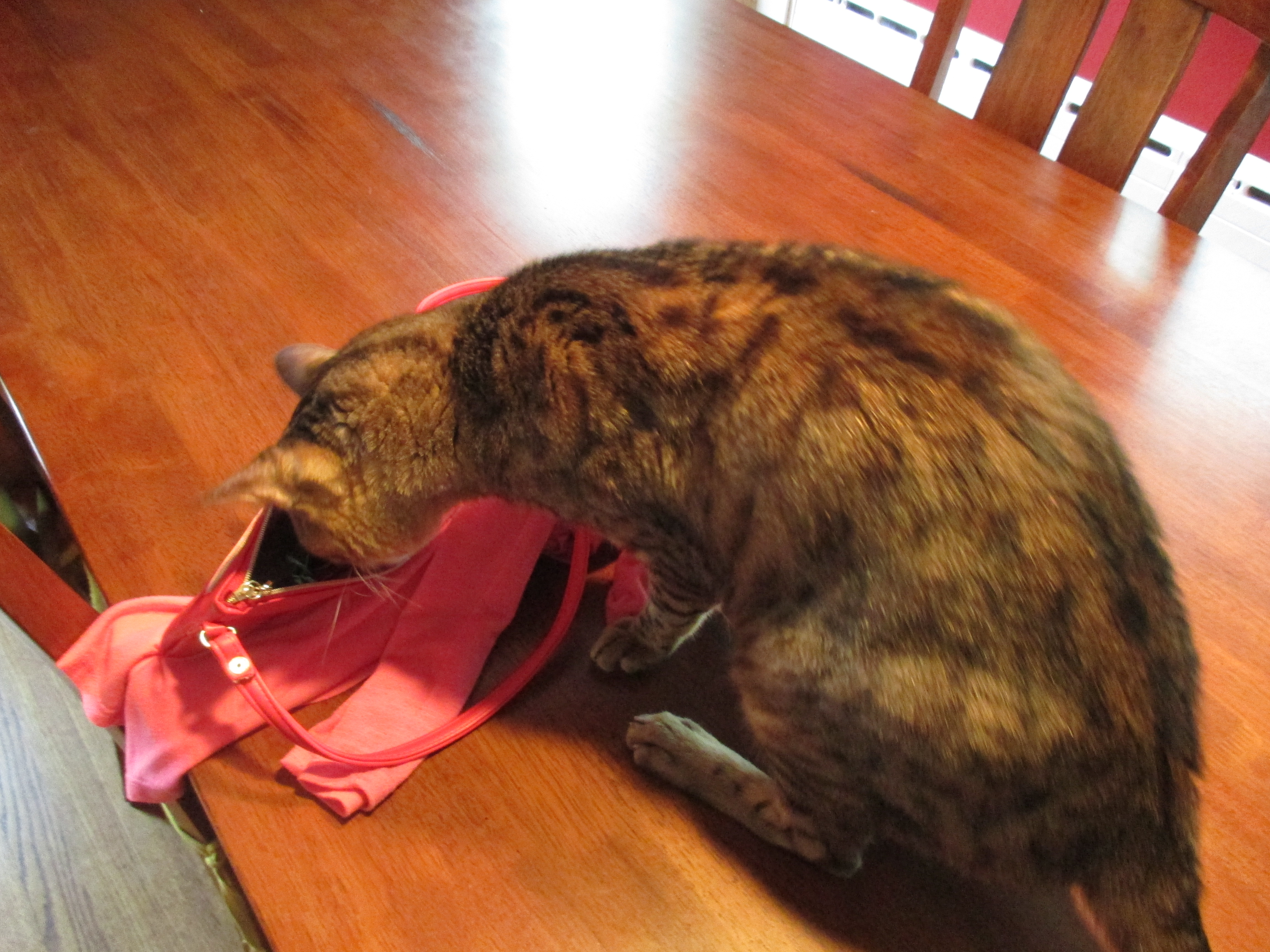 Ok, I’m letting the cat out of the bag (tee-hee). I stole from my neighbors, several neighbors. What did I take? I took some green. No, not cash. Catnip. Yes, I’m confessing. But, what cat mommy wouldn’t do the same? Just look at this handsome Bengal. You’d pilfer weeds from your neighbor’s sidewalk for this little guy too.