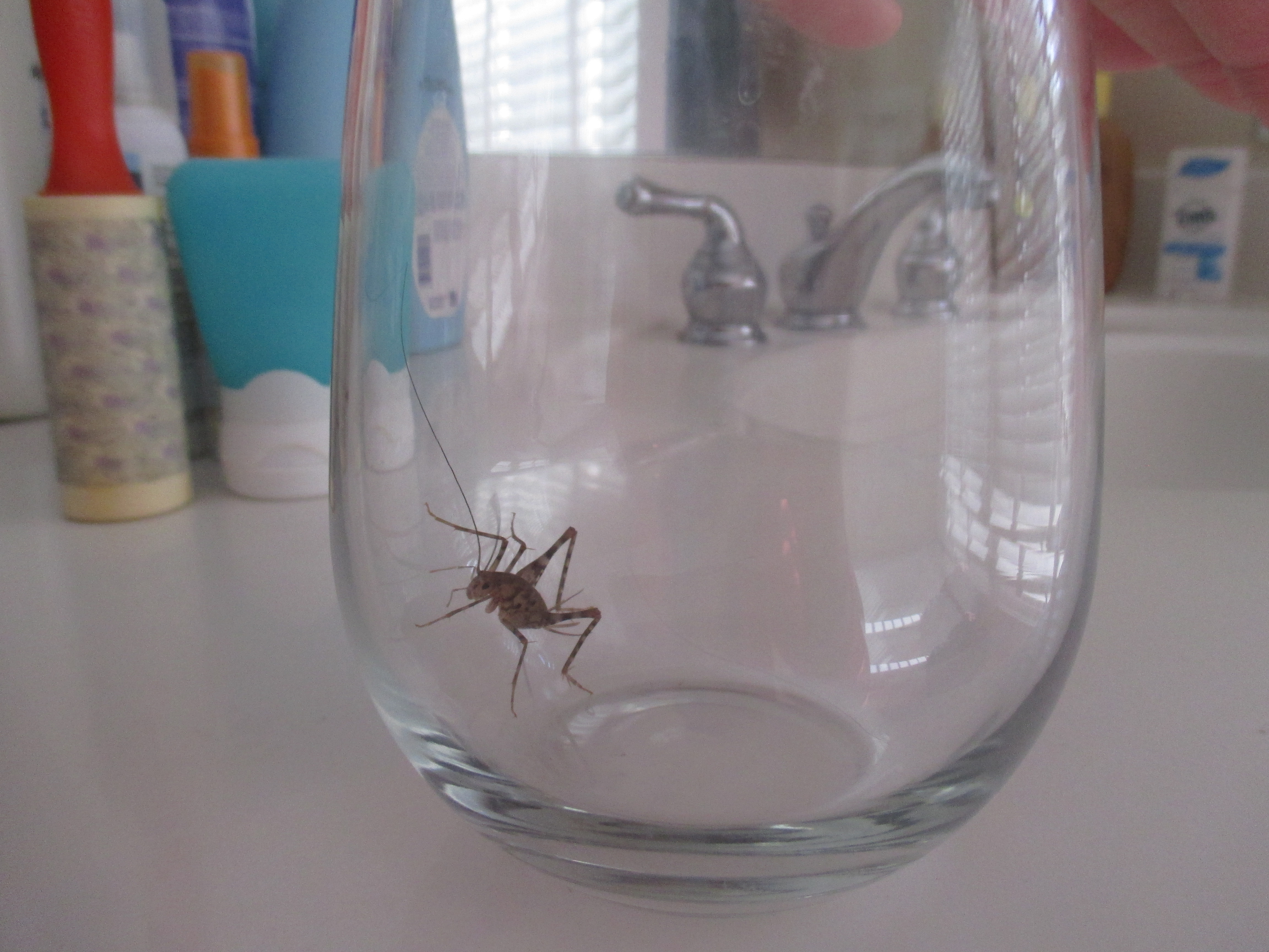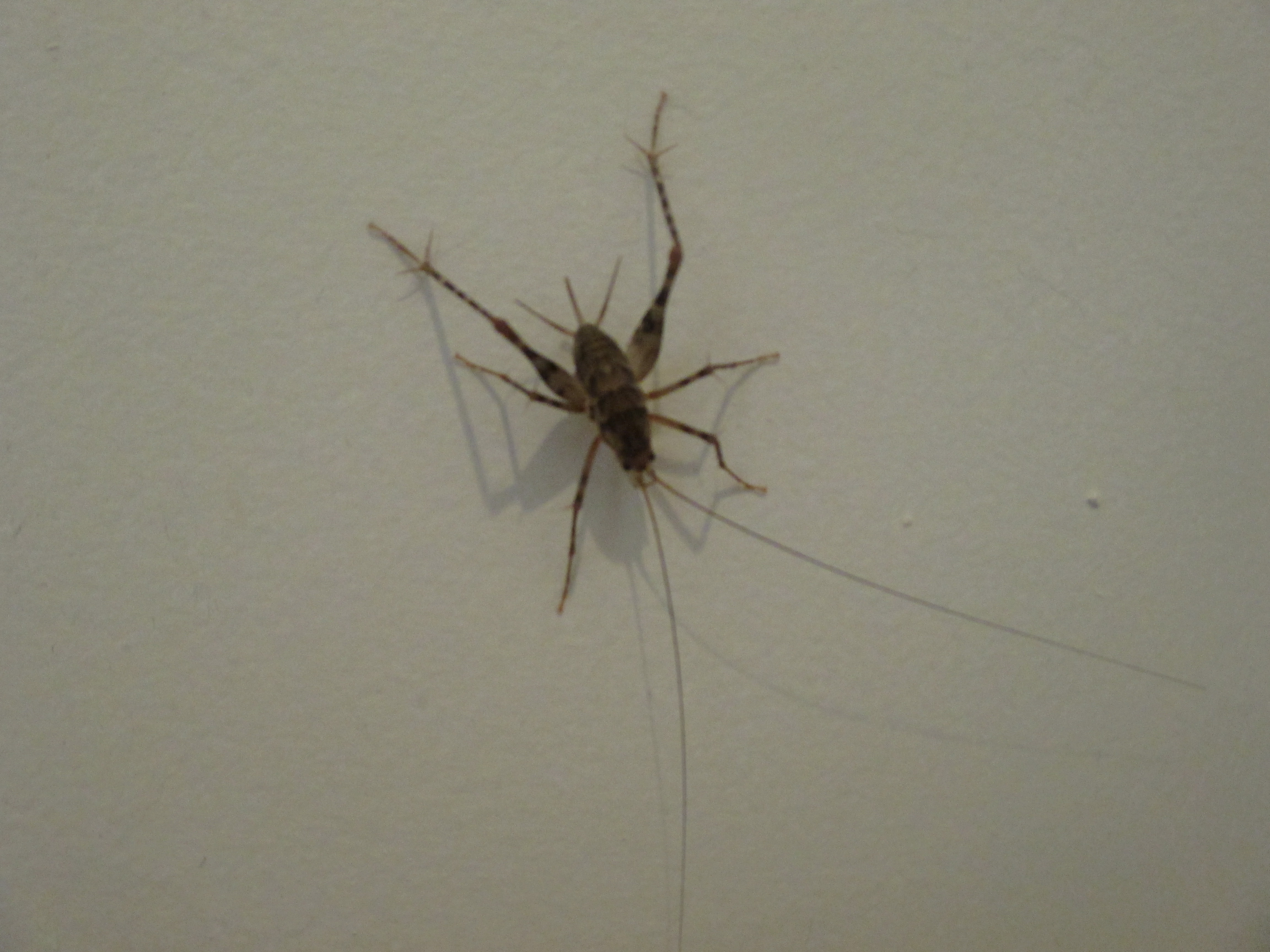 I don’t startle when I see insects. However, I’d just woken up this morning and stumbled half-asleep into the bathroom and flicked on the light. This dude made me jump! It’s a cricket, but not just any cricket. It’s a variety of cave cricket and they are rather large…