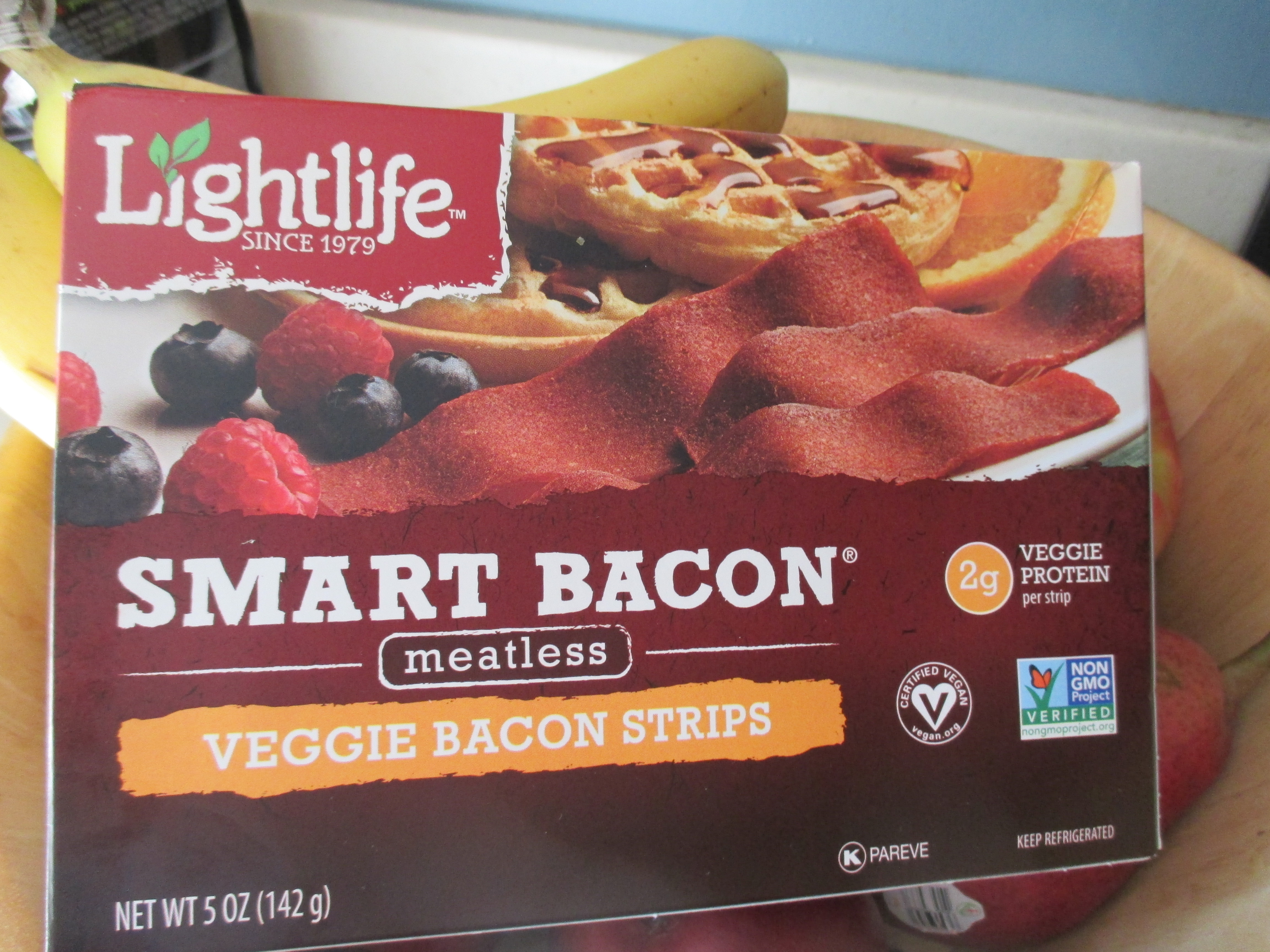 Heinz natural yellow mustard, Lightlife vegan veggie bacon strips (oh yes they get crispy in the pan), lettuce…