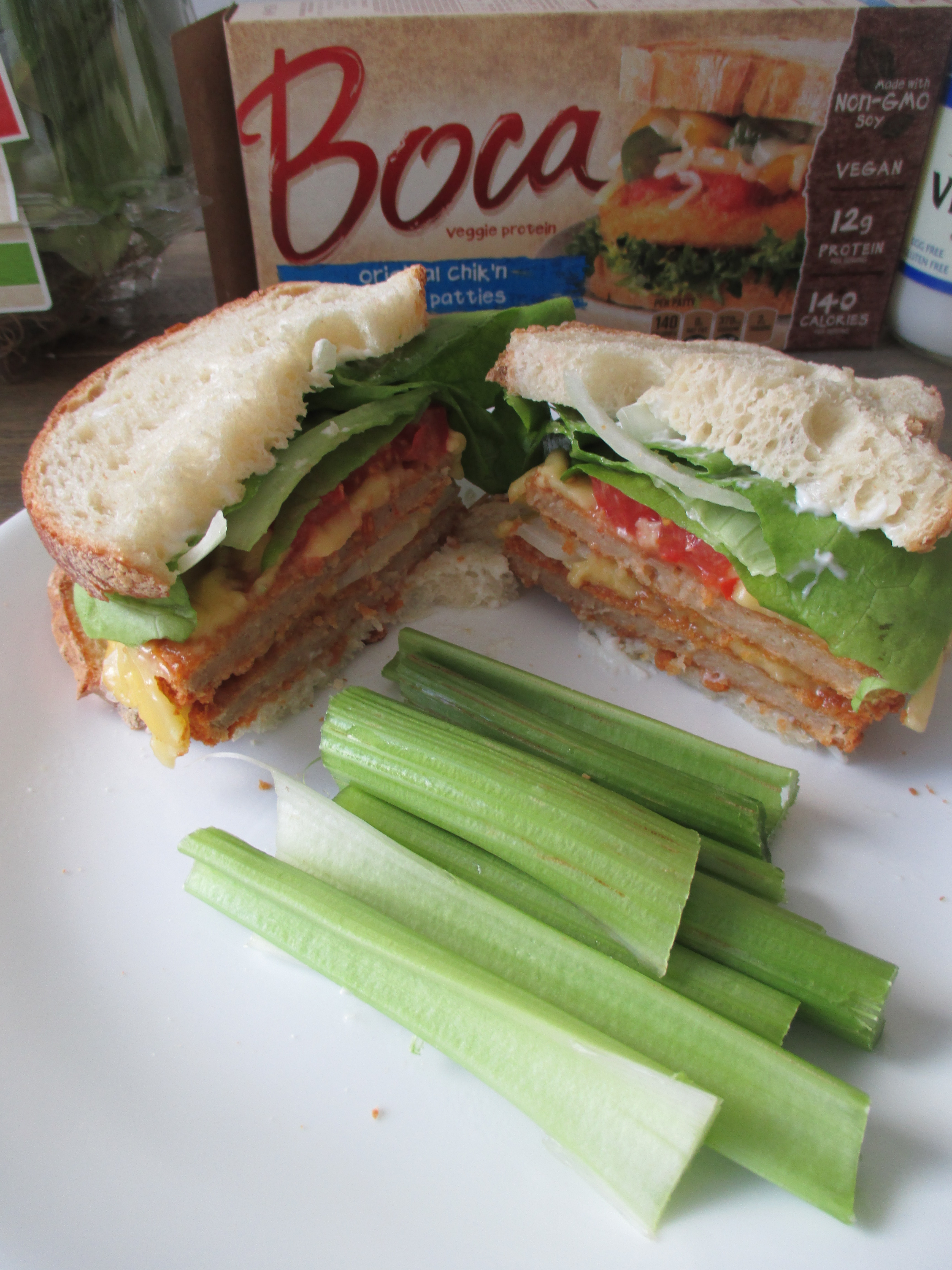 Toasted Italian bread, Earth Balance organic/vegan mayo, sliced red onion, tomato, a dash of pepper…