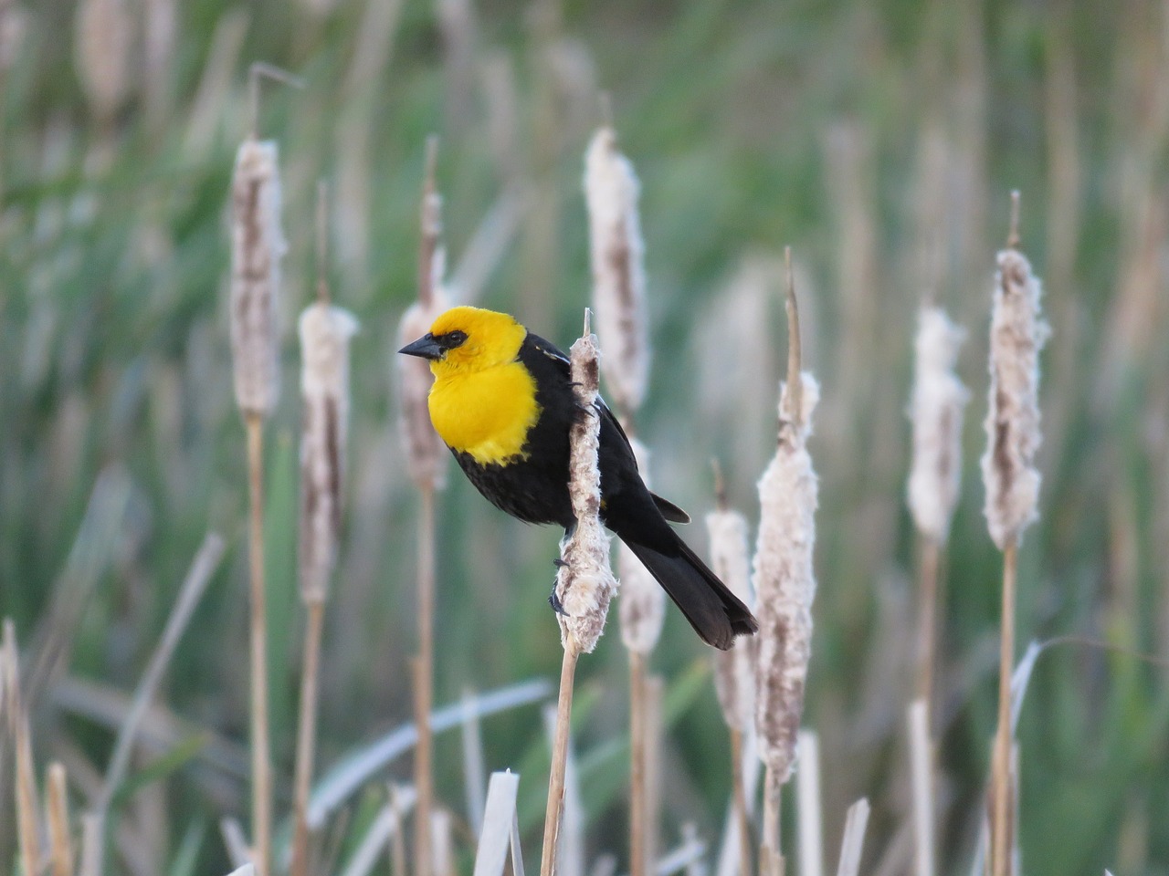 The Yellow-headed Blackbird is rare in Illinois. I’ve been watchful of nature since I was a kid, and never saw one. Which was why when I spotted one one dismal rainy morning fluffing its feathers and looking like a magnificent firecracker, I was literally stunned. It – was – BEAUTIFUL.