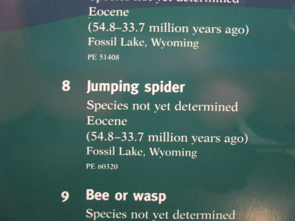 So when I saw this fossil of a jumping spider at the Field Museum…millions of years old…well, I just wish I could have seen him in action! Watched him hop! Watched him hunt! Too cool, man.