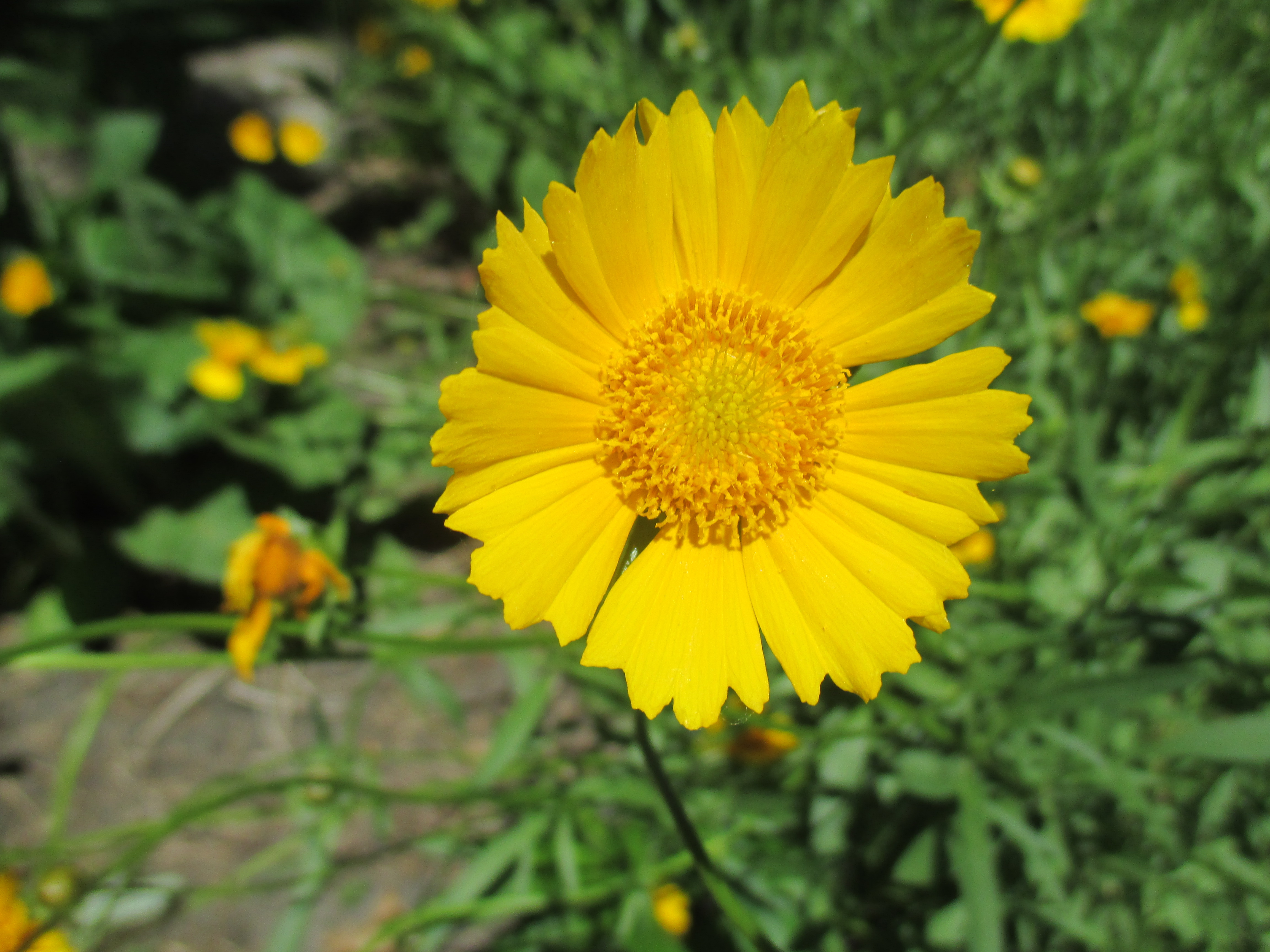 I had no idea what bird this was! We had a chat, the yellow head and I. Sort of a one-sided conversation. I told it how beautiful it was. It fluffed the rain off its feathers, puffing up, walking cautiously around through the grass. I think it might have been hunting for worms in the rain.