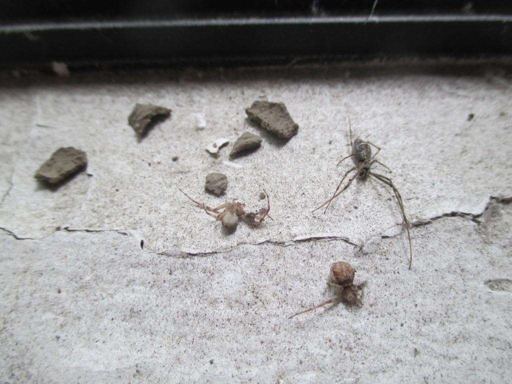 You know, he’d been building a mud vessel in my window frame and secreting spiders in it for later – maybe for the eggs it intended to lay there too – or for a snack. I broke up the mud (no bees in my bathroom please), but it was too late for the spiders. That bee was a hunter!