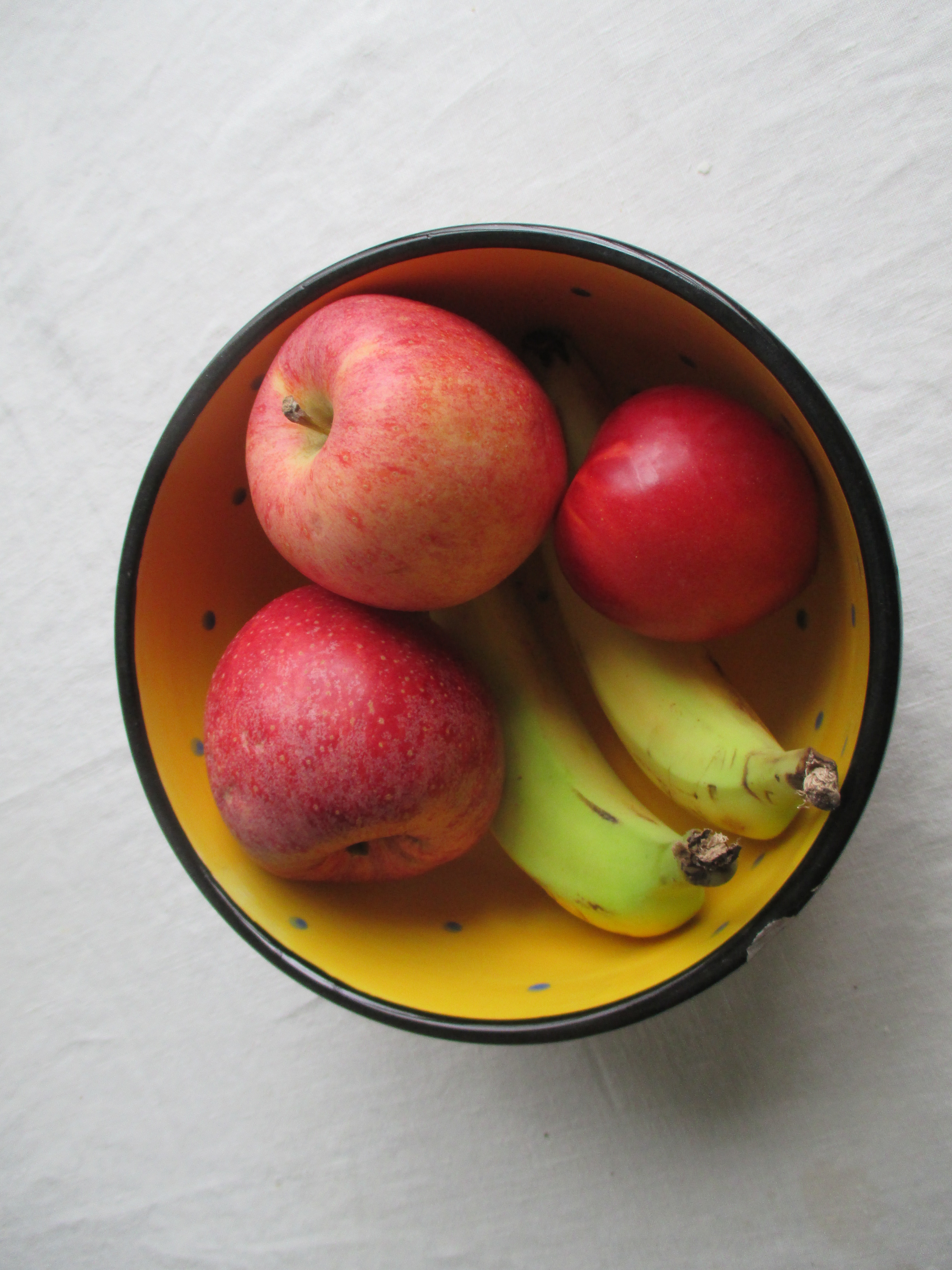I smile for my bowls of fruit, remembering how lucky I am to have what I need. Every small blessing – beautiful.