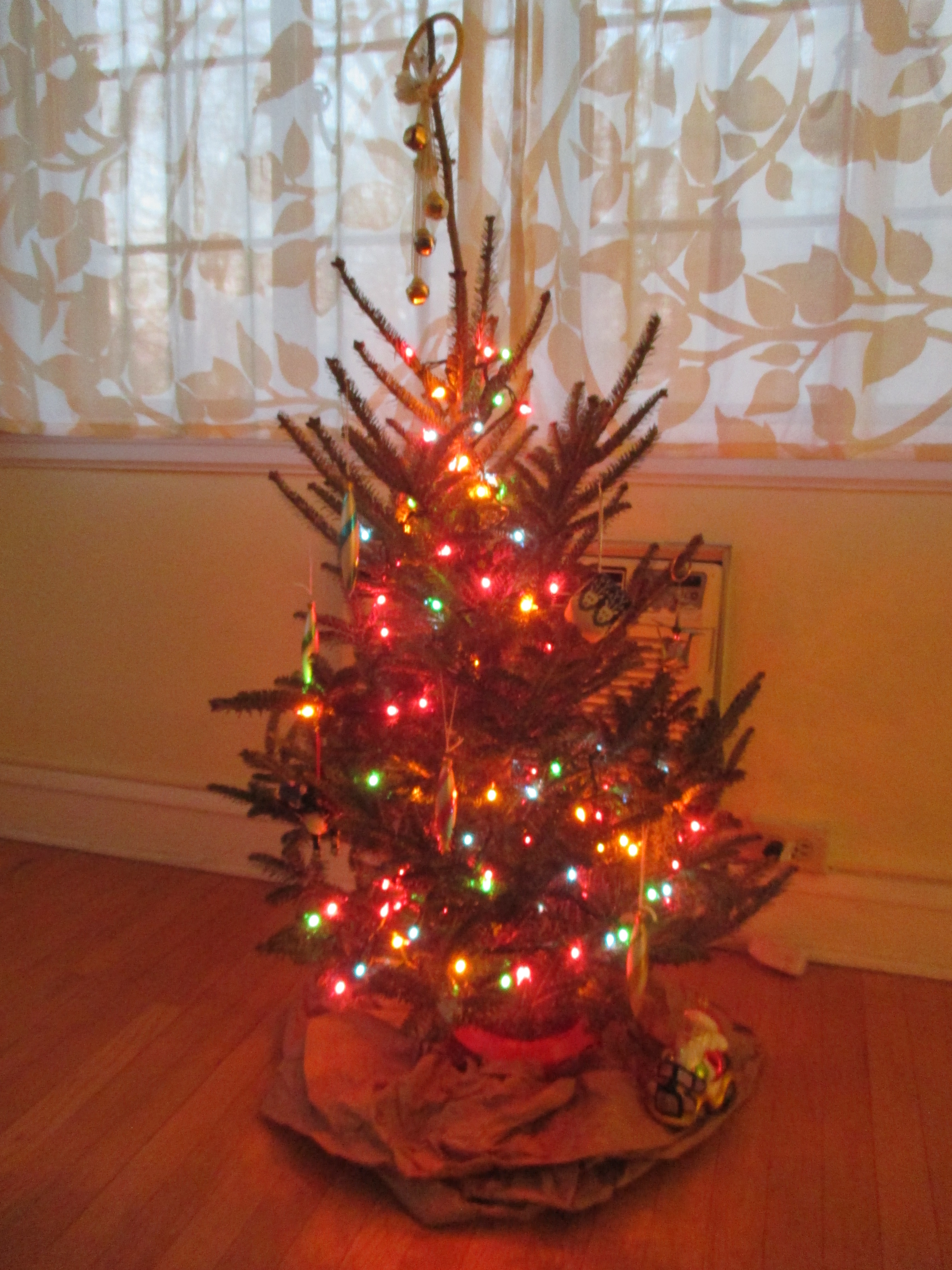 Here’s my tiny Christmas tree! It’s real. It drinks a lot of water. Or maybe it just evaporates fast? I enjoy sniffing my tree. That pine scent – oh my word!