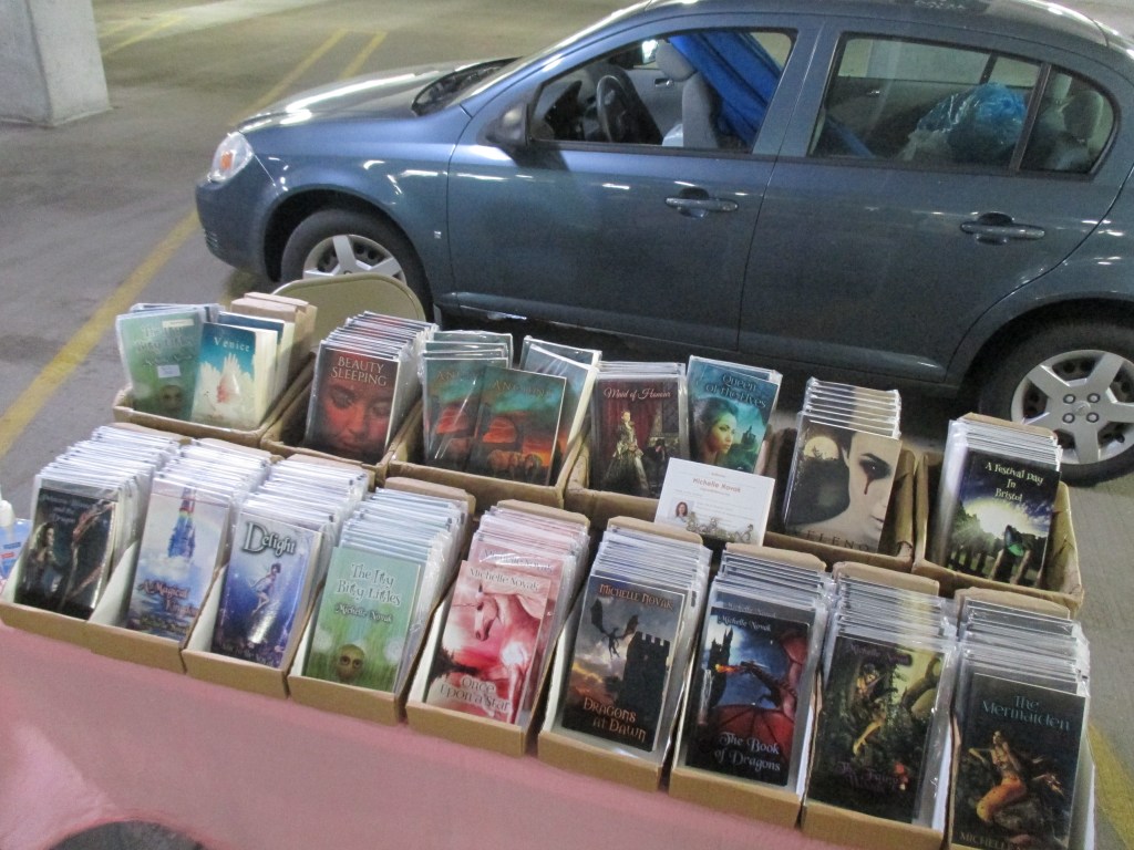 Set up a mini bookshop in a parking garage next to my faithful bookmobile today – and I loved it!
