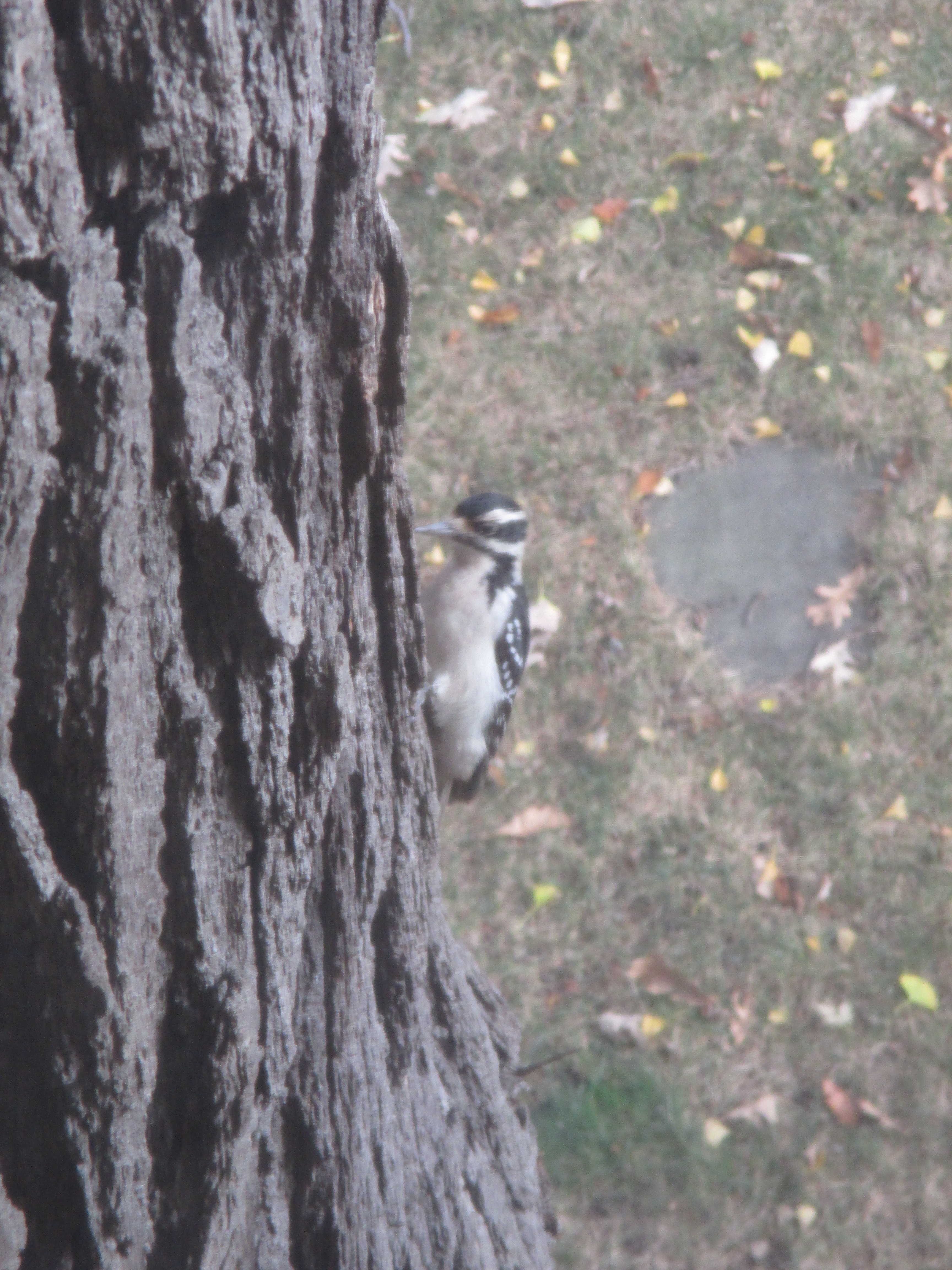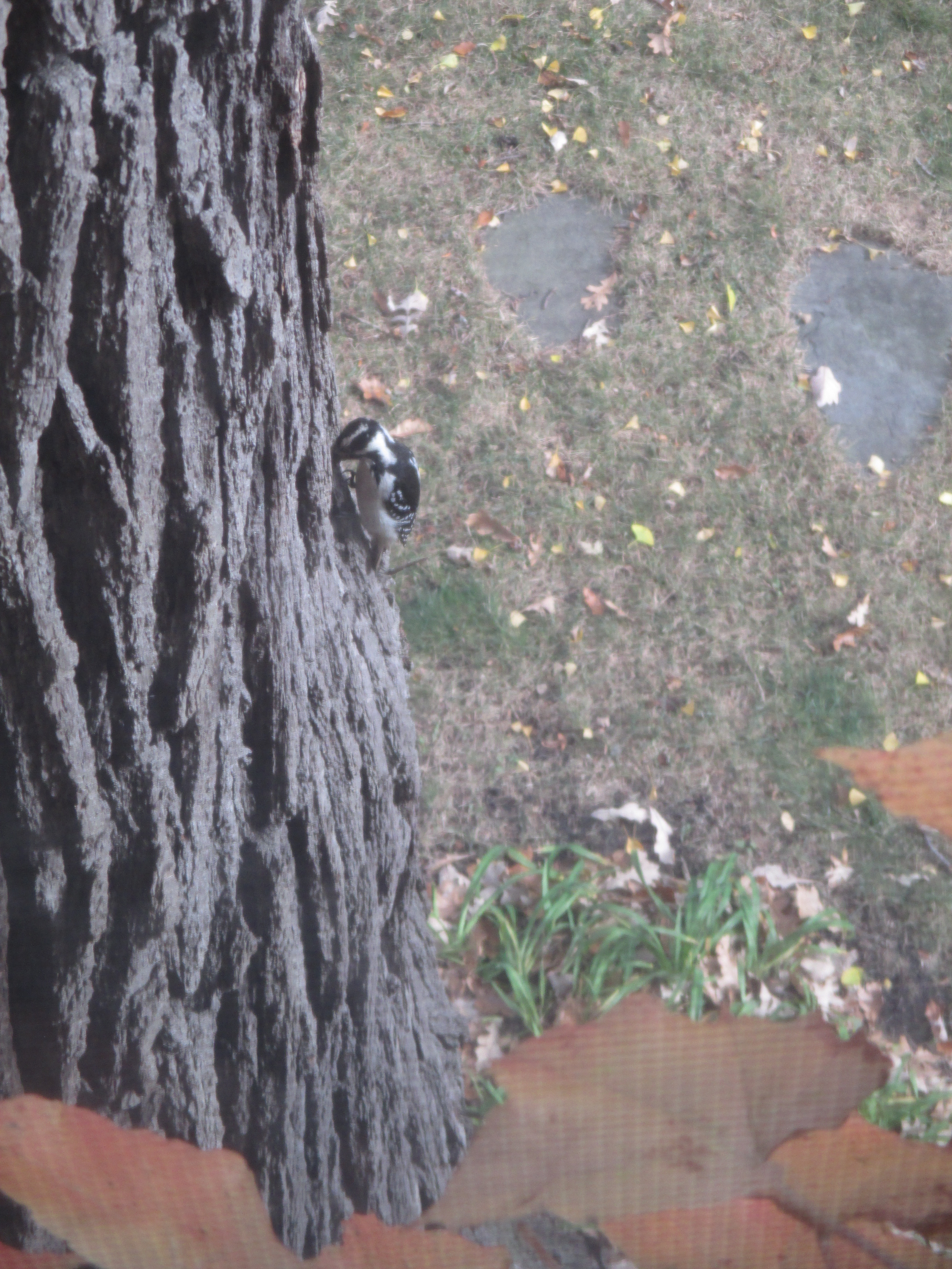 You may have to squint, but if you look at the tip of the beak on the woodpecker above, you’ll see his tongue. They have very long tongues (up to four inches) and they use them to help capture those delicious bugs they’re pecking for. “Ha-ha you grub! You cannot escape my long tongue!”