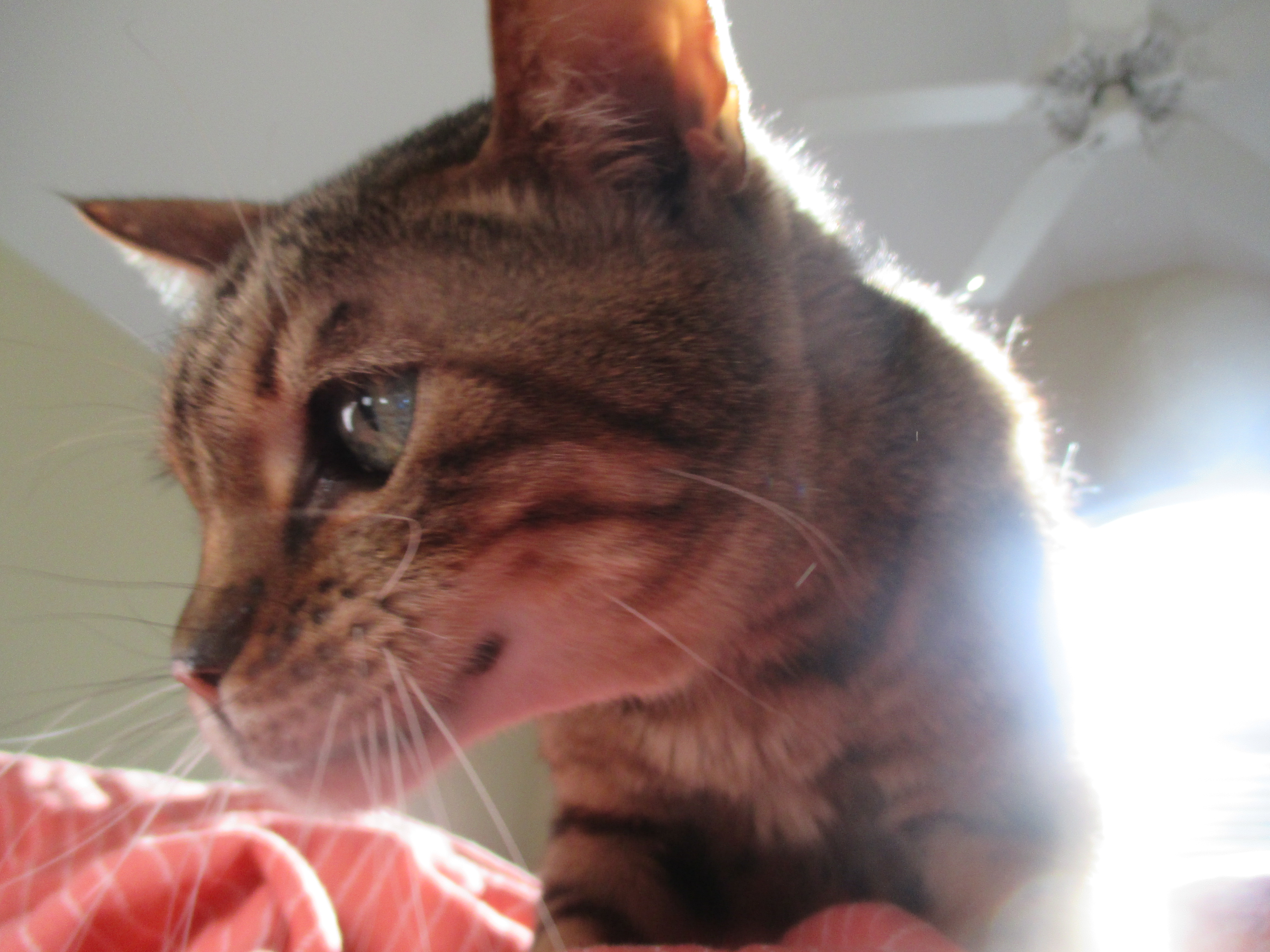 My cat looks youthful, but he’s actually in his golden years. A friend suggested his eyesight might not be what it used to be, thus he needs to sit closer to me to see me? I think he’s seeing alright. I guess he’s just showing me how much he loves me…