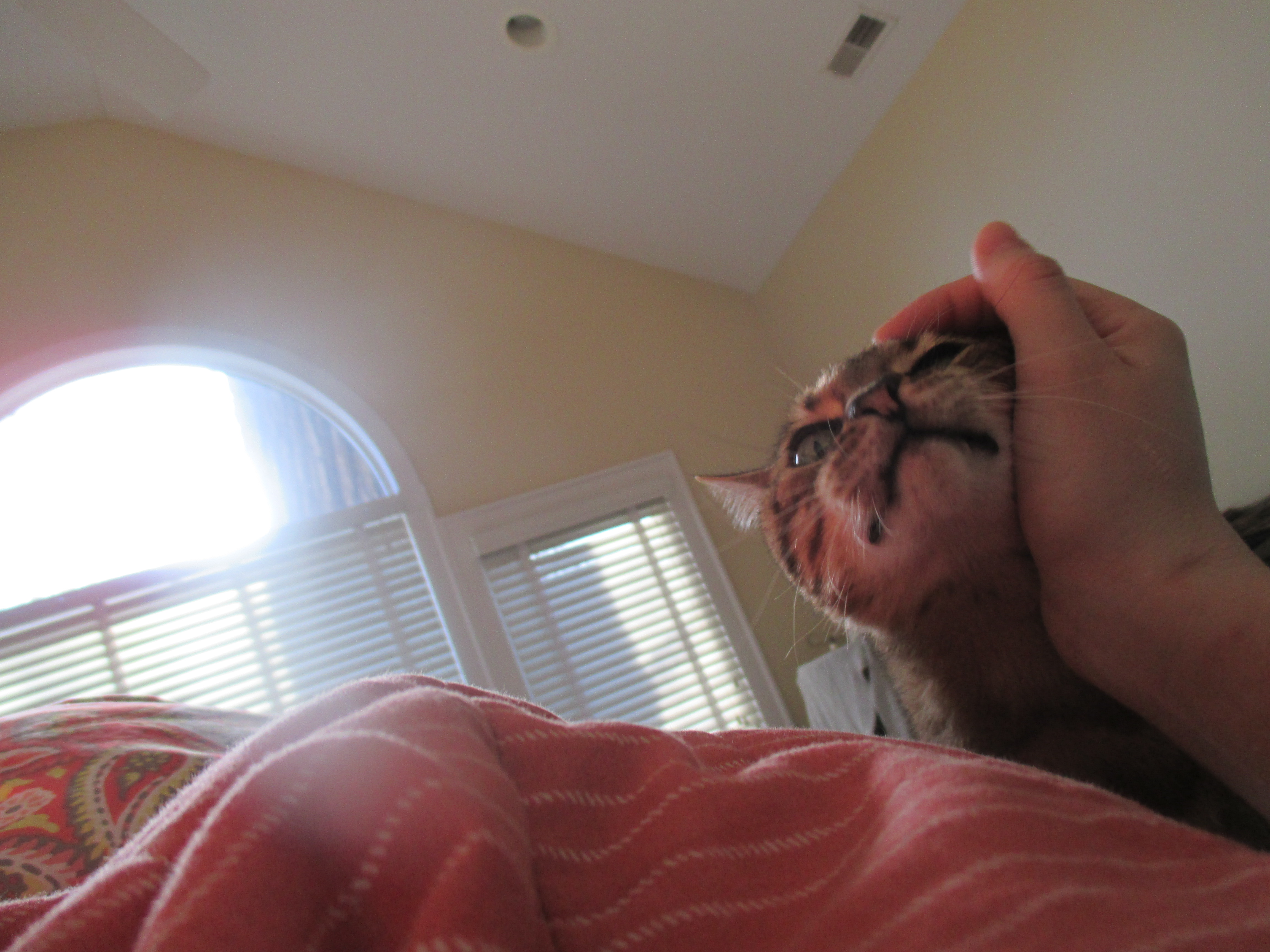 For the past few months, sitting beside me in bed hasn’t been enough. I’ll be totally conked out, sleeping on my side, and he’ll literally perch on my shoulder. It’s a balancing act that only a cat could manage, and new behavior for him…