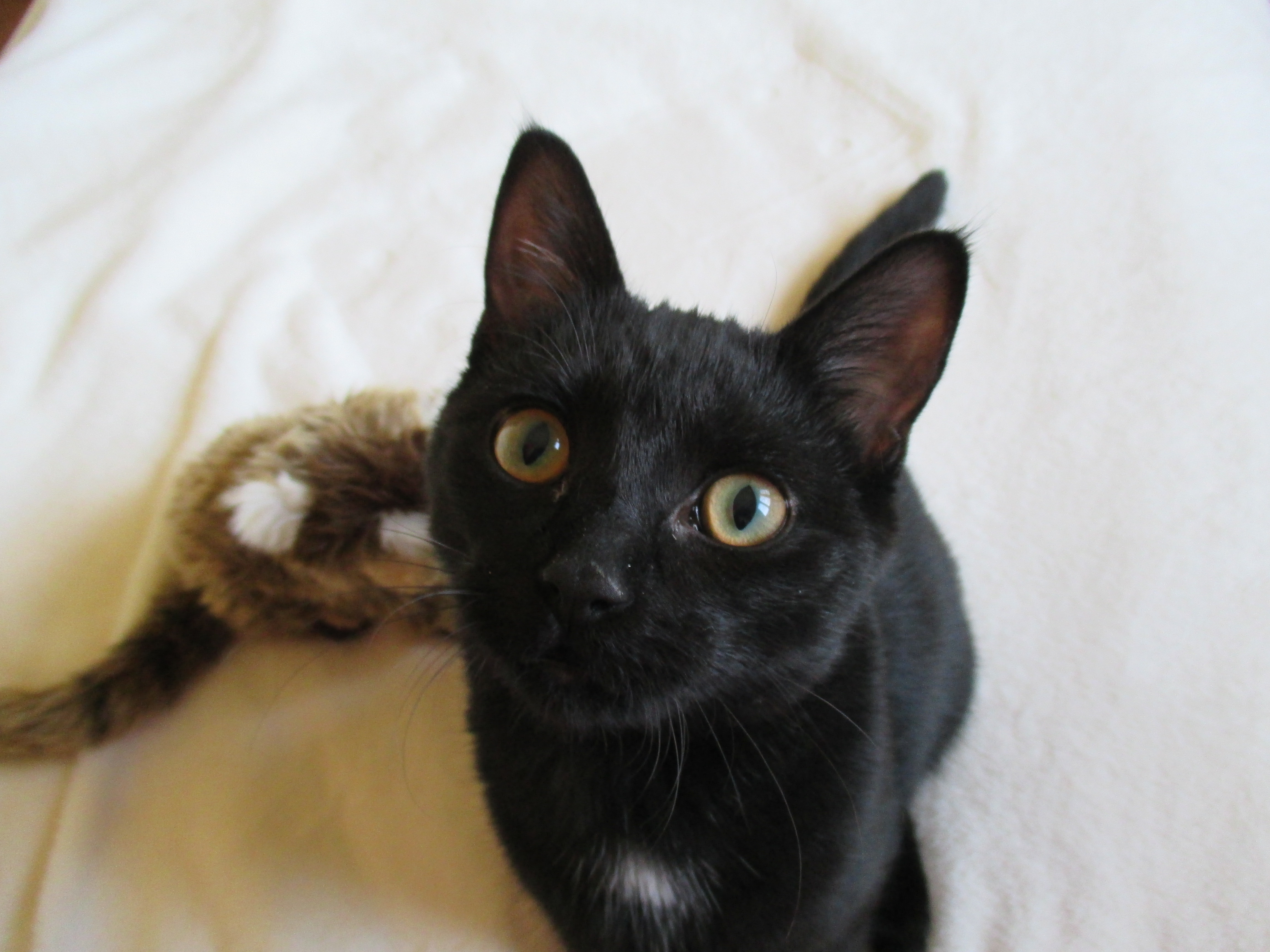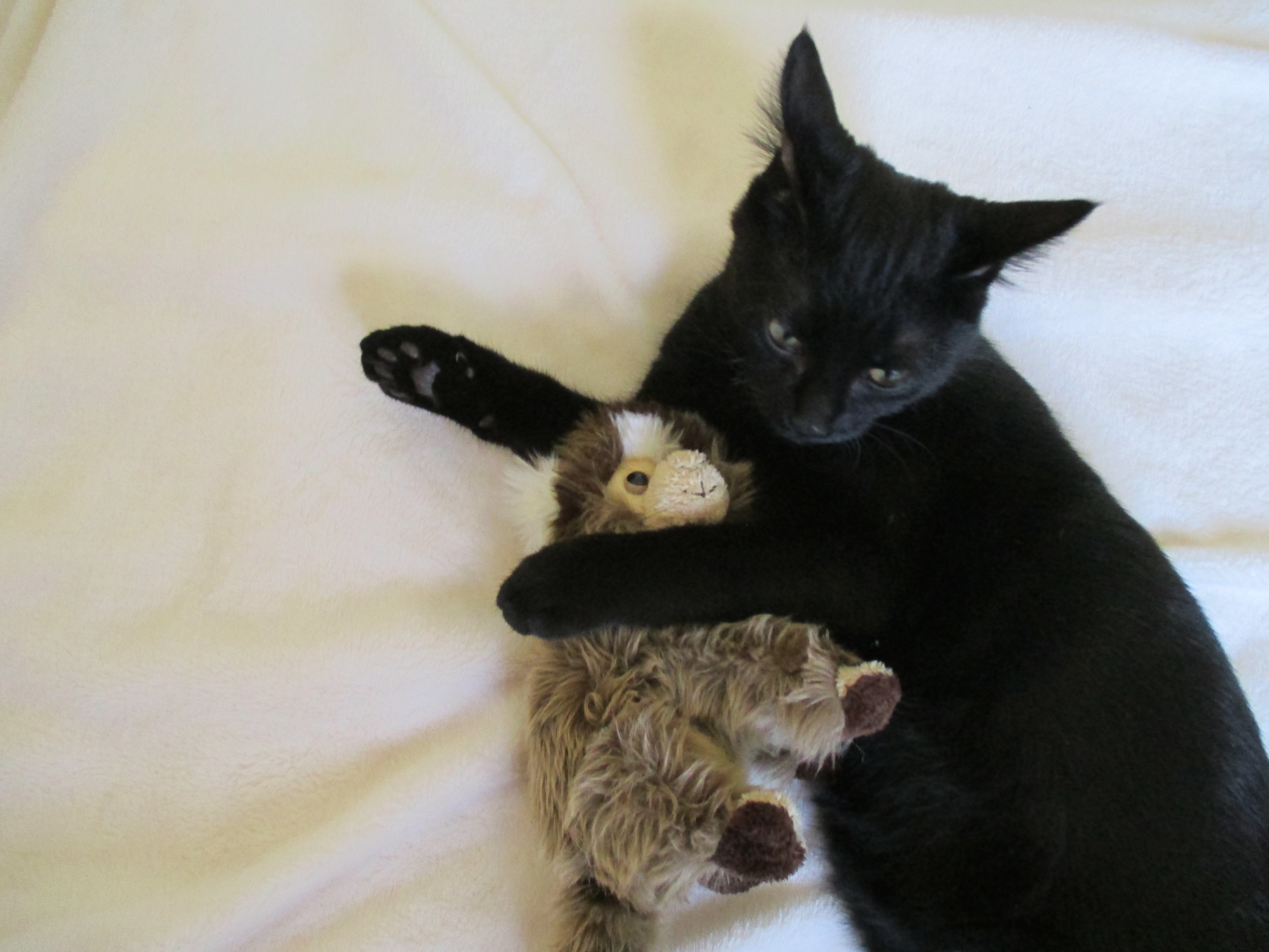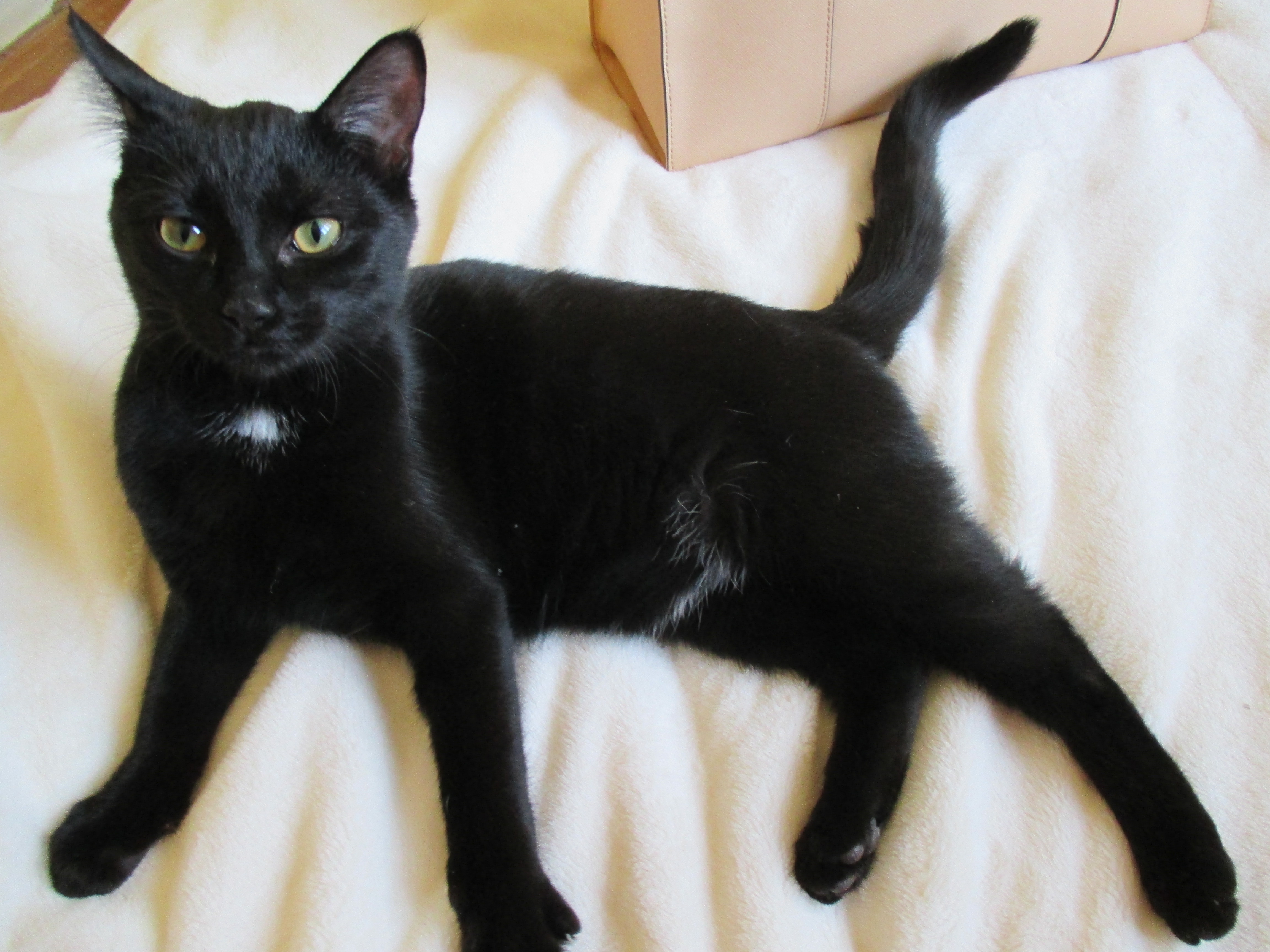 Knowing that they wouldn’t be adopting any more, I was shocked to discover on one visit that they’d not just adopted one, but two young black cats, Midnight and Peanut.
