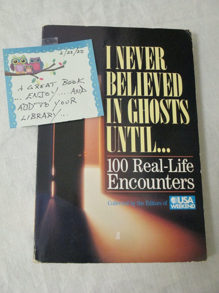 This book came today. He always sends the ghost books because they are a favorite to us both. They’re my candy bars as far as book genres go. I’m surprised we haven’t read them all by now!