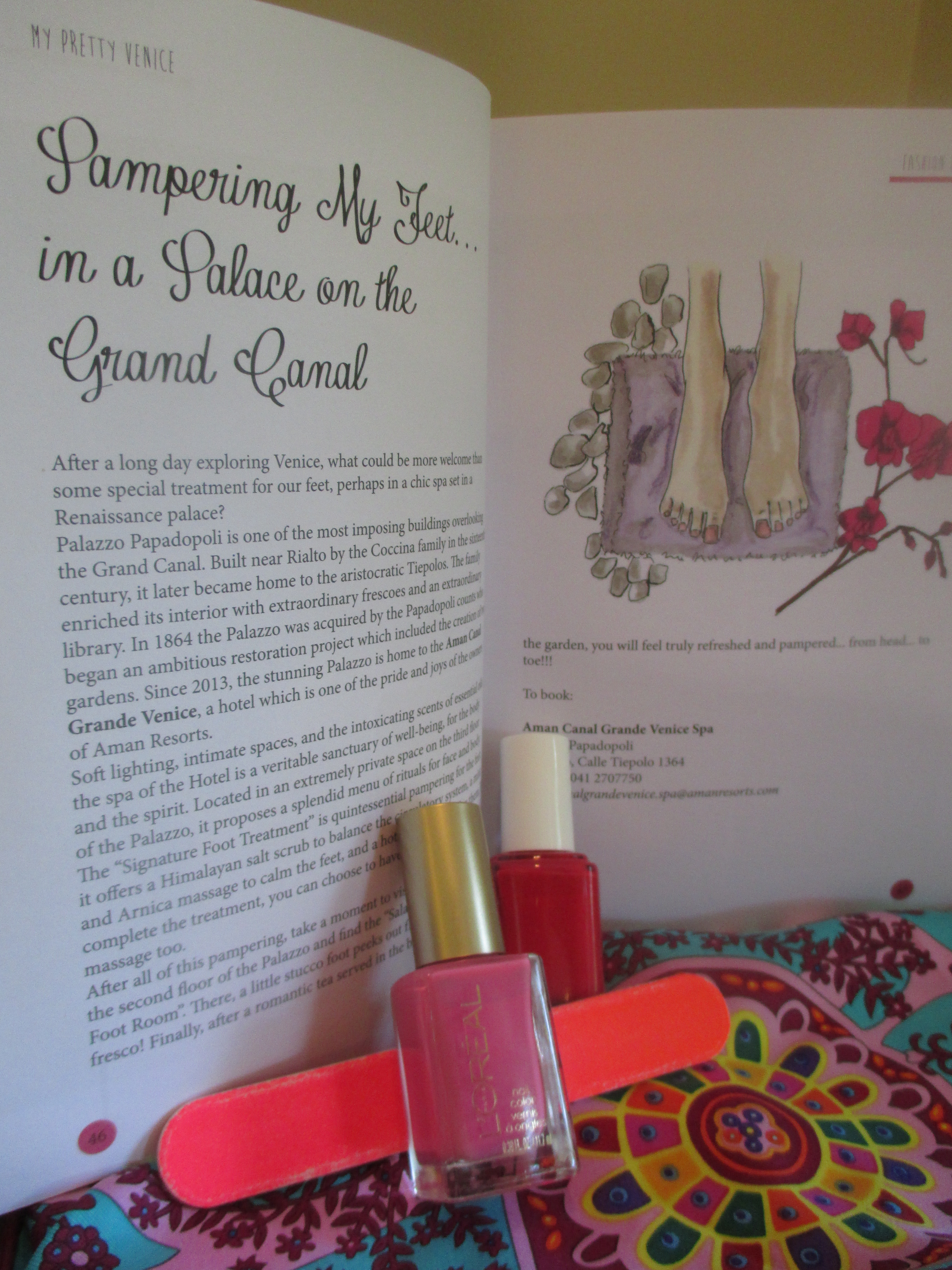 What do I love about this book? First, Rainer and Campagnol have written an uncomplicated, selective guide to Venice, directed toward delights that ladies might enjoy. That hidden garden, that charming bookstore, a place to pamper your toes or find elegant trappings. However, it isn’t just dry information, it’s playful and delightfully accompanied by Beatrice Campagnol’s darling illustrations (also including illustrative, well placed photos by Lorenzano Di Renzo). A thoughtful guide for the travel-minded, adventurous spirit that is also endearing to the imagination!