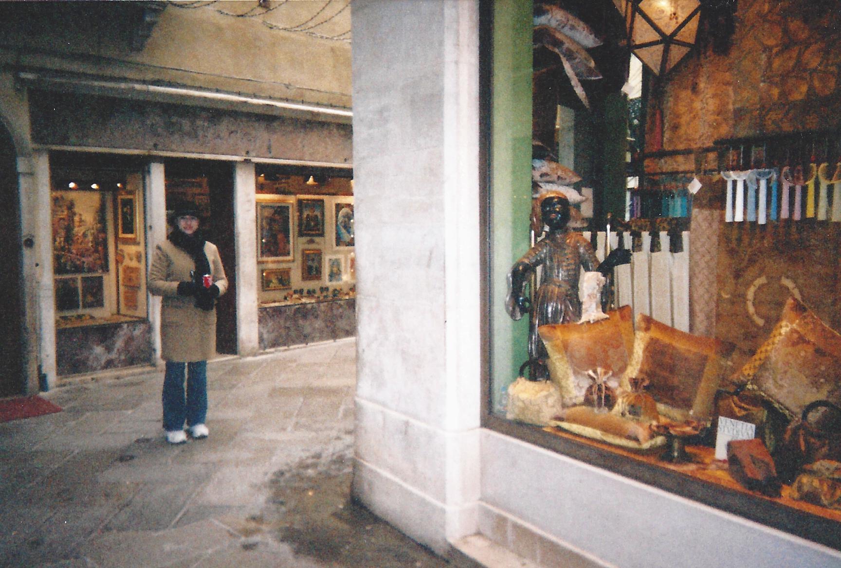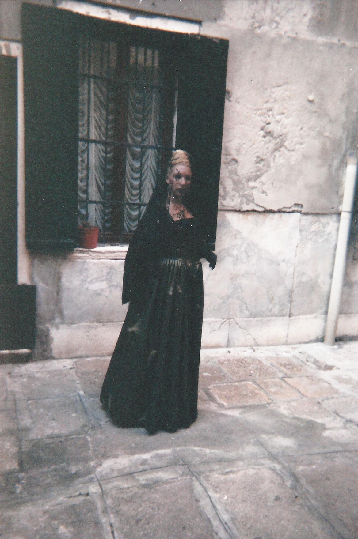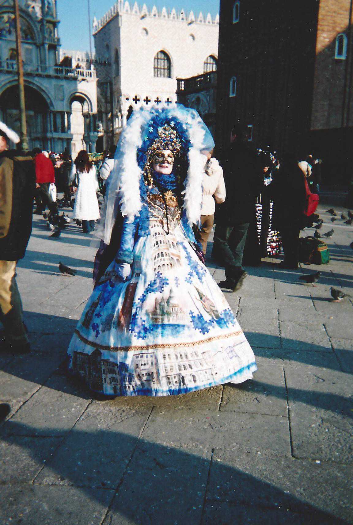 This is Lita, my precious mother and best friend! Here she is wearing one of her own 18th century style day dresses in Venice during the Carnival.