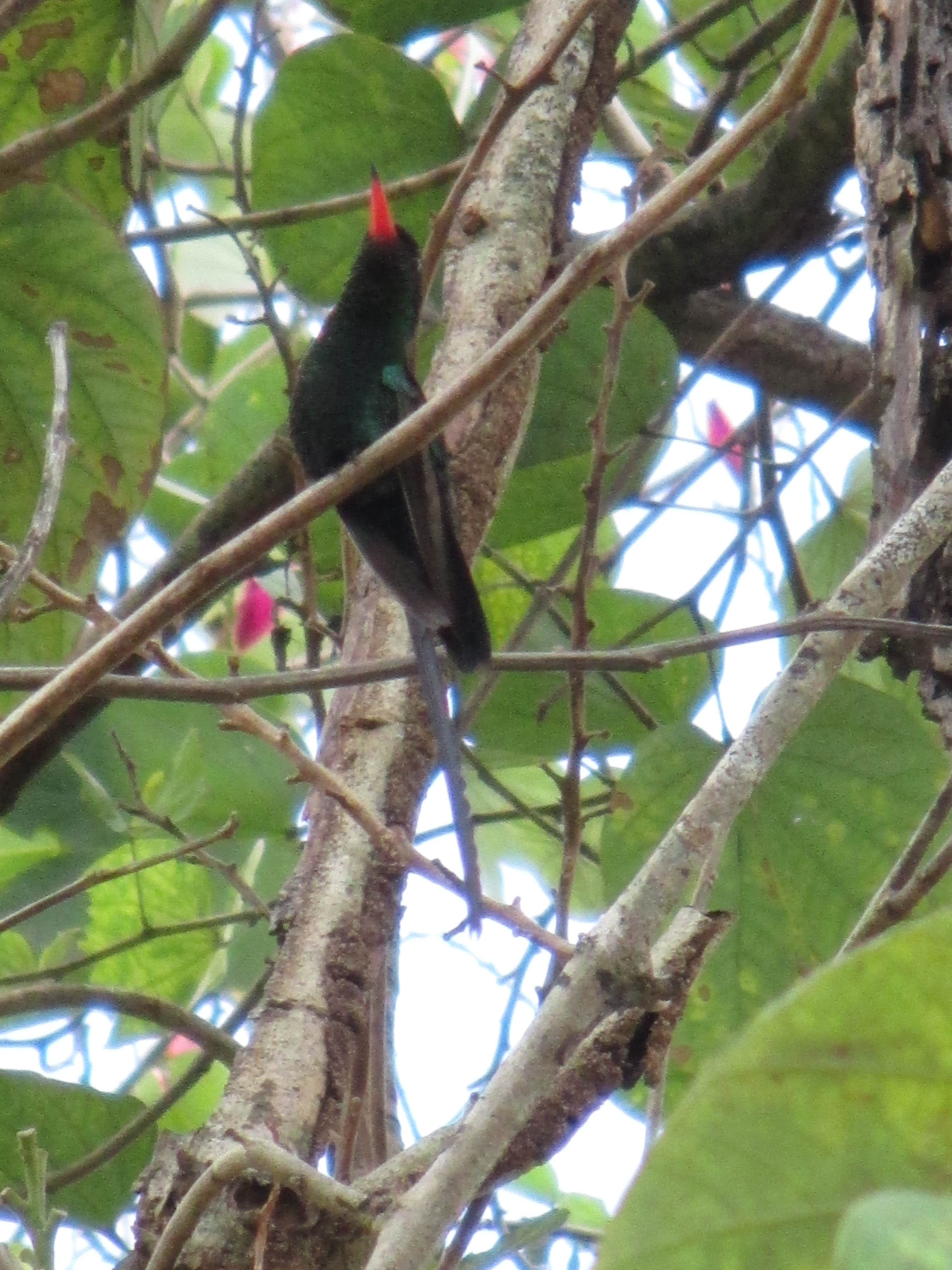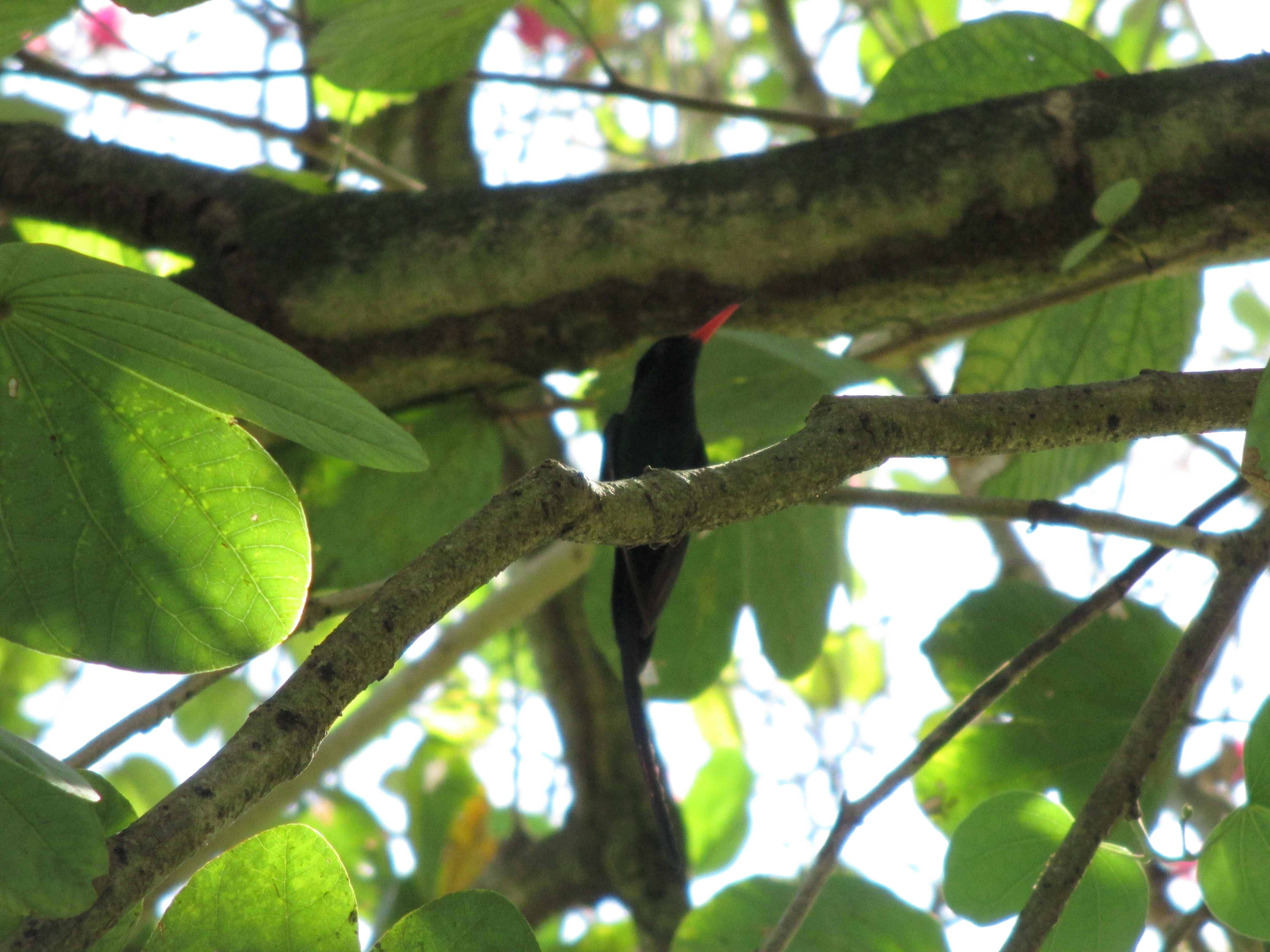 I couldn’t get over the enormous hummingbirds flying all over the place. They are apparently some of the world’s largest. They looked more like blackbirds than the itty-bitty hummingbirds we see at home. Their long beaks appeared useful in getting nectar from such big tropical flowers.